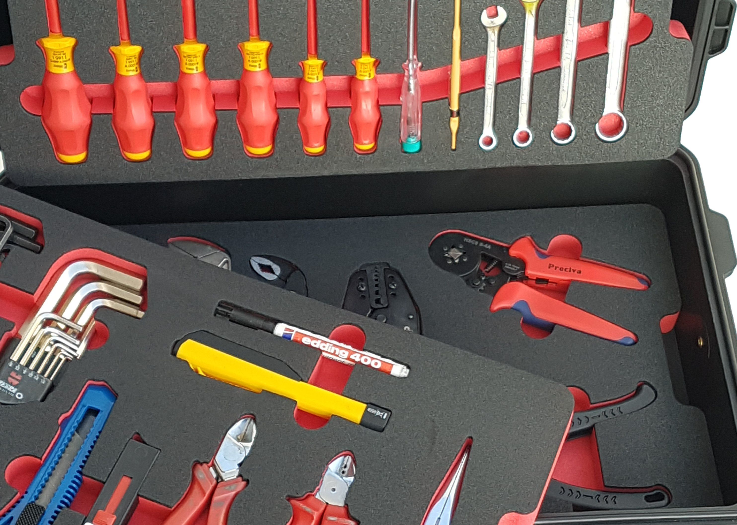 Eine individuell angefertigte Schaumstoffeinlage ist die Basis für eine nachhaltige Ordnung am Arbeitsplatz. Mit diesem Konzept bieten wir eine spezielle Lösung für organisierte Platzierung von Gegenständen.